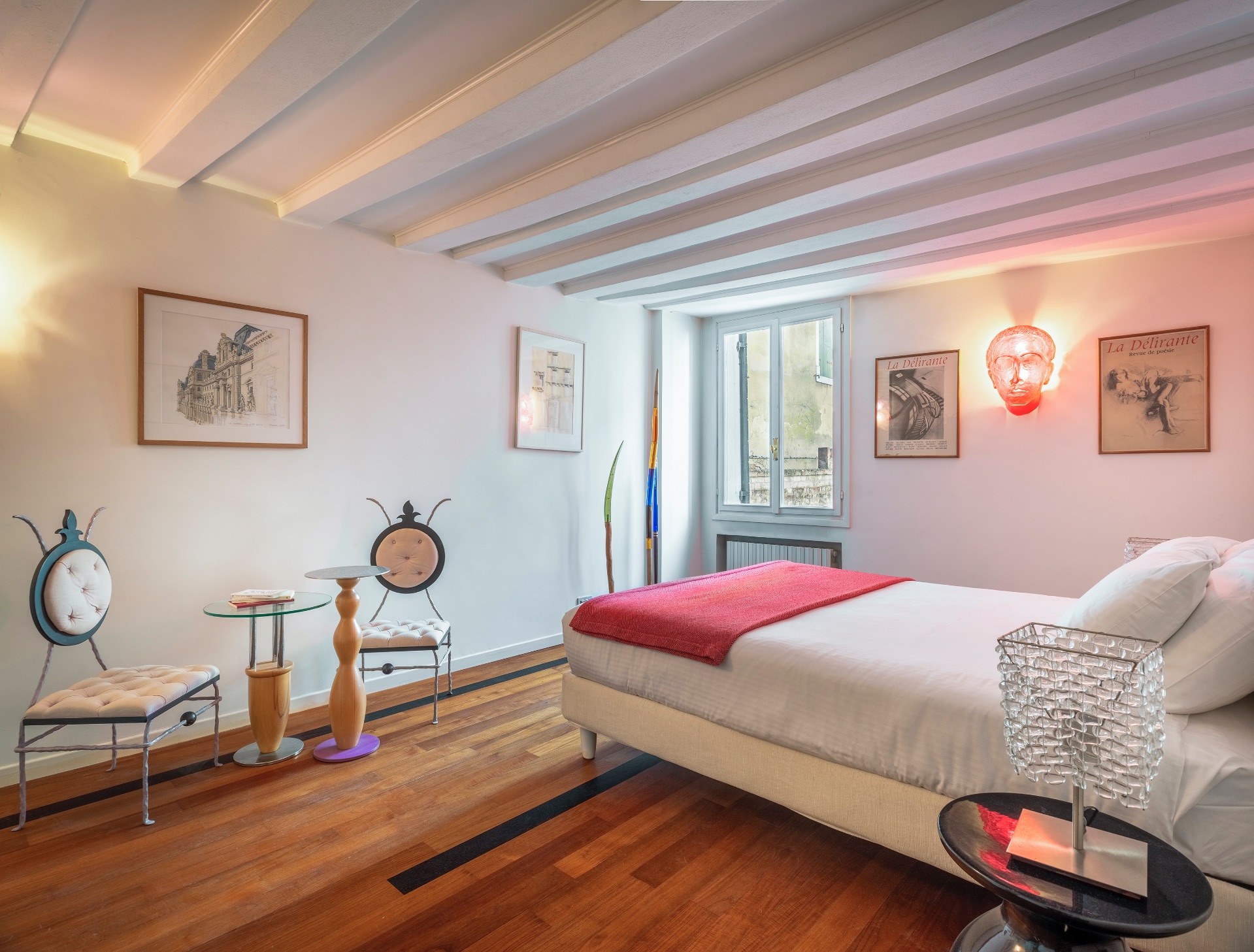 This is a uniquely private home in one of the most desirable areas of Venice, and close to both the Zattere and the Grand Canal at Salute. On the 1st floor of an historic canal front building, it is a large and impressive space, with ultra stylish furnishings and works of art, extensive living areas, an elegant large dining room, fully equipped chefs kitchen, and with four double bedrooms, each with private bathroom.